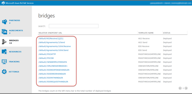 The first change you’ll see when you log into the BizTalk Services Management Portal is on the Bridges page:
