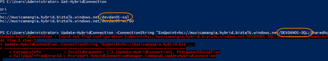 Update-HybridConnection : Could not find configuration Endpoint=hc://musicamangia.hybrid.biztalk.windows.net/DEVDAN05-SQL;SharedAccessKeyName=defaultListener;SharedAccessKey=