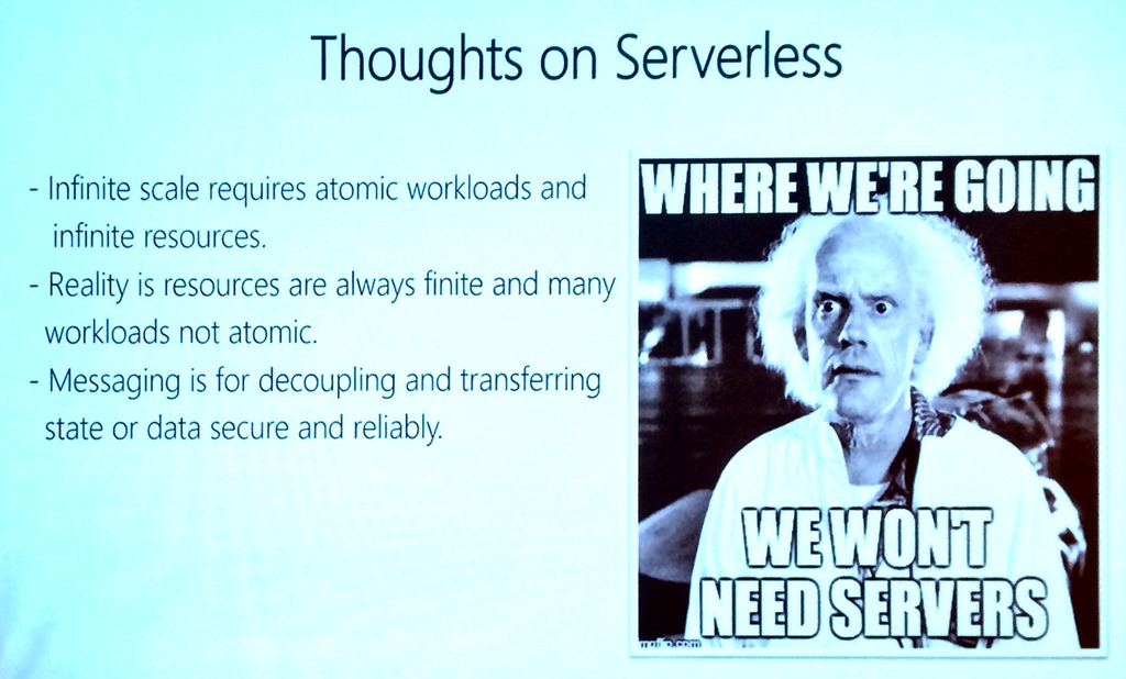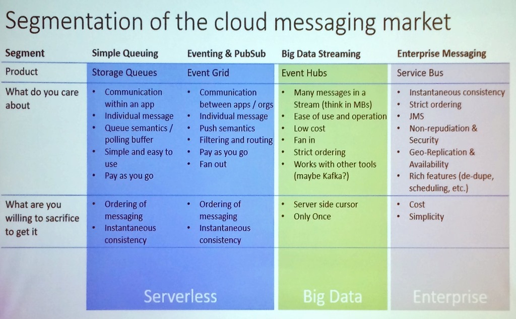 - Clemens Vasters. (Need I say more?) The genius architect behind Azure Service Bus gave a clear, in-depth discussion about the difference between messaging (which is about intents) and eventing (which is about facts). He also introduced Event Grid’s support for CNCF Cloud Events, and open standard for events.