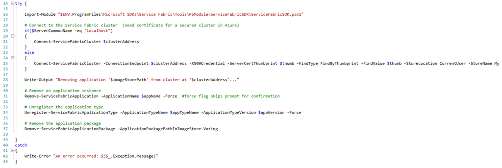 The Undeploy_SFApplication.ps1 script does much the same, except in reverse of course: